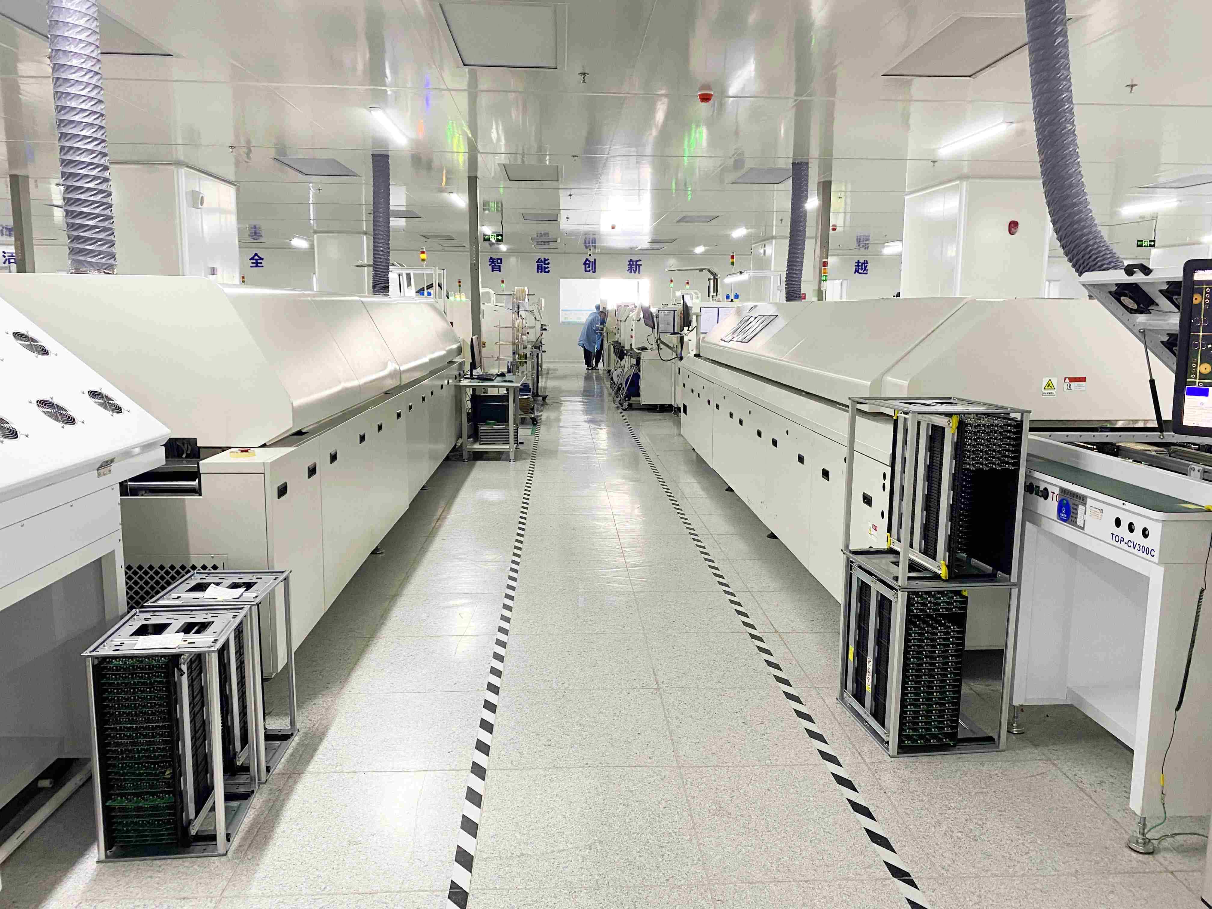1) 24条高端SMT生产线,每条线配有SPI、炉前AOI、炉后AOI、氮气回流焊;